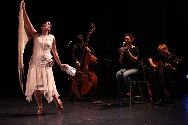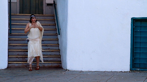 Marissa Chibas kicks up the dust on Los Angeles history as Clara, a disoriented flapper who awakes after a wild night at the Ambassador Hotel, in 1926, to find she has danced her way into a new century. Performing live and on film, Chibas playfully integrates silent cinema shot by John Hawk with live music inspired by the Roaring 20s composed by Nathan Phelps, as Clara attempts to find her way in the modern city. Wandering to her old haunts—Olvera Street, The Vista Theatre—Clara reveals the rich historic influences to be found in a city often blind to its own past.