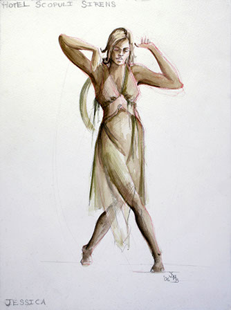 This film was shot in downtown Los Angeles at the historic Frontier Hotel. The costume and set were developed together to create an oceanic world inspired by Pre-Raphalite women and Depression Era charm.
