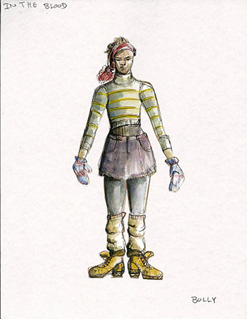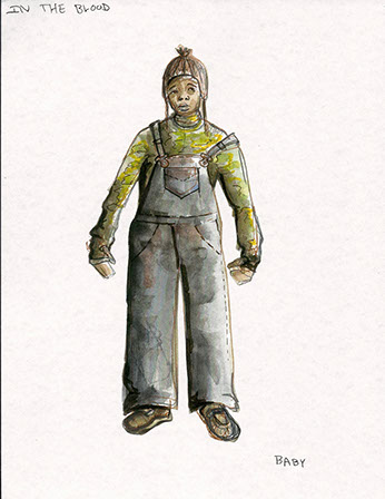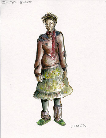 In The Blood tells the story about a mother, Hester, and her five fatherless children, trying to find help to make her children's lives successful. Living in poverty and having the reputation as a "slut" on her, her children and her future begins to grow dim. Hester seizes the opportunity to receive help from her children's fathers, with hopes that one may help them. The play moves to other characters' stories (confessions) such as the doctor, welfare, and her friend, who is involved with Hester's struggling predicament.