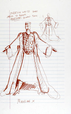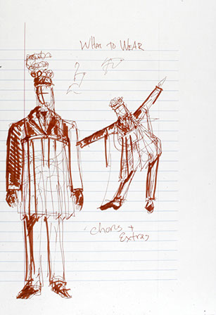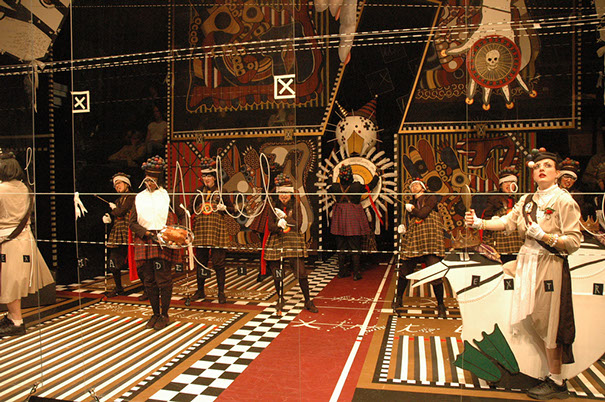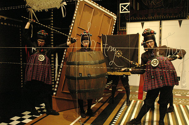“The production, mounted by CalArts' Center for New Performance, is a riot, what with its flamboyant murals (Kate Manheim), wacky props (Carolina Angulo) and outlandish costumes (E.B. Brooks) all merrily competing for attention.”