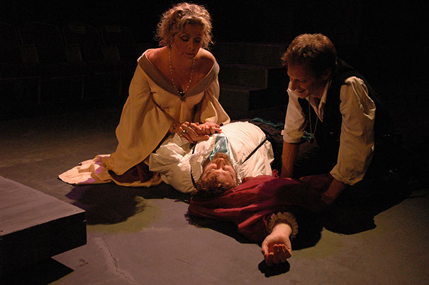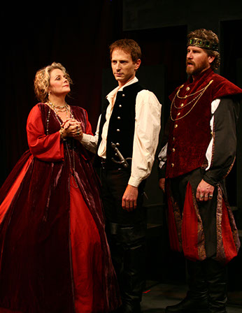 A fresh take is apparent from the surgical elimination of the spooky throat-clearing scene on the battlements of Castle Elsinore. In its place, a silent prologue spotlights the grief-stricken Hamlet (Leo Marks) kneeling before a towering cross at his father's funeral. Cutting to the unseemly revelry, two months later, at the marriage of Hamlet's mother, Gertrude (Lee Ann Manley), to his uncle Claudius (Paul Sulzman) neatly telescopes the two seismic events that threaten his sanity.