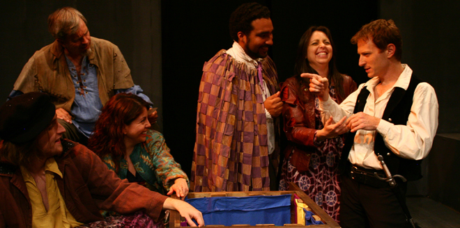 “Kubzansky’s production twists the 16th-century tale of full-blooded beastliness into something much more modern and psychologically nuanced. Even the costumes, designed by E.B. Brooks, are modern suits and jackets sliced, folded, and rearranged to approximate the shapes of period garments, but without any attempt to disguise their origins.”