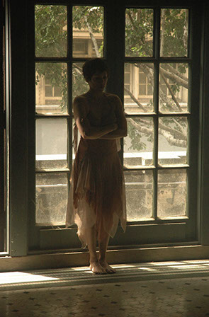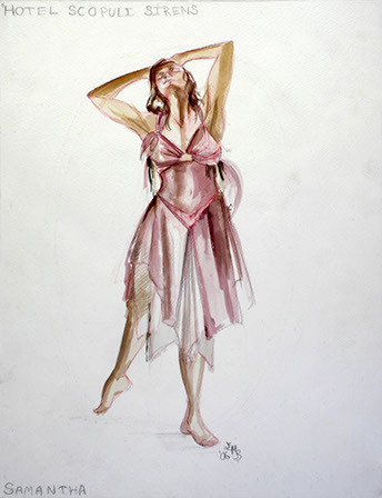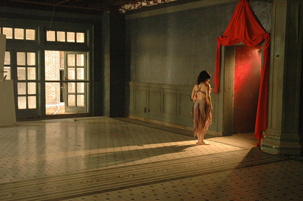 This film was shot in downtown Los Angeles at the historic Frontier Hotel. The costume and set were developed together to create an oceanic world inspired by Pre-Raphalite women and Depression Era charm.