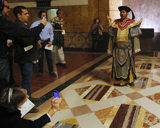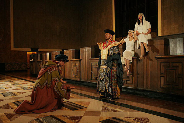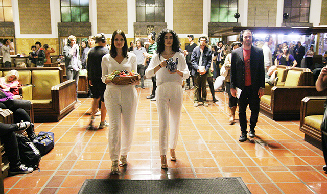 Imagine yourself in LA's historic Union Station, surrounded by passengers and passersby, wearing wireless headphones, and experiencing a new opera happening all around you - live. The story depicts a host of fantastical cities the explorer Marco Polo narrates to Kublai Khan: unreal cities of desire, of memory, of the imagination. Cerrone’s delicate musical setting explores sonic qualities of decay and lushness with a haunting simplicity. No two audience members will have the same visual experience of the opera as they wander freely through the operating station, searching for the singers and dancers.