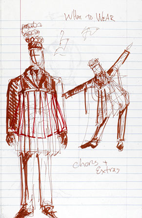 “The production, mounted by CalArts' Center for New Performance, is a riot, what with its flamboyant murals (Kate Manheim), wacky props (Carolina Angulo) and outlandish costumes (E.B. Brooks) all merrily competing for attention.”